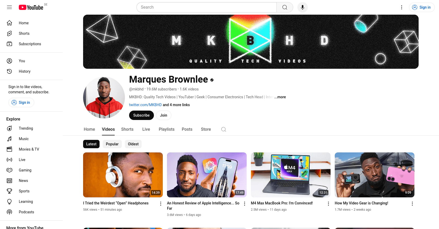 Marques Brownlee, widely known as MKBHD, is a prominent YouTube content creator specializing in tech reviews and consumer electronics. He joined YouTube on March 21, 2008, and has since garnered a massive following with over 19.7 million subscribers. For more information, visit Marques Brownlee YouTube Channel.