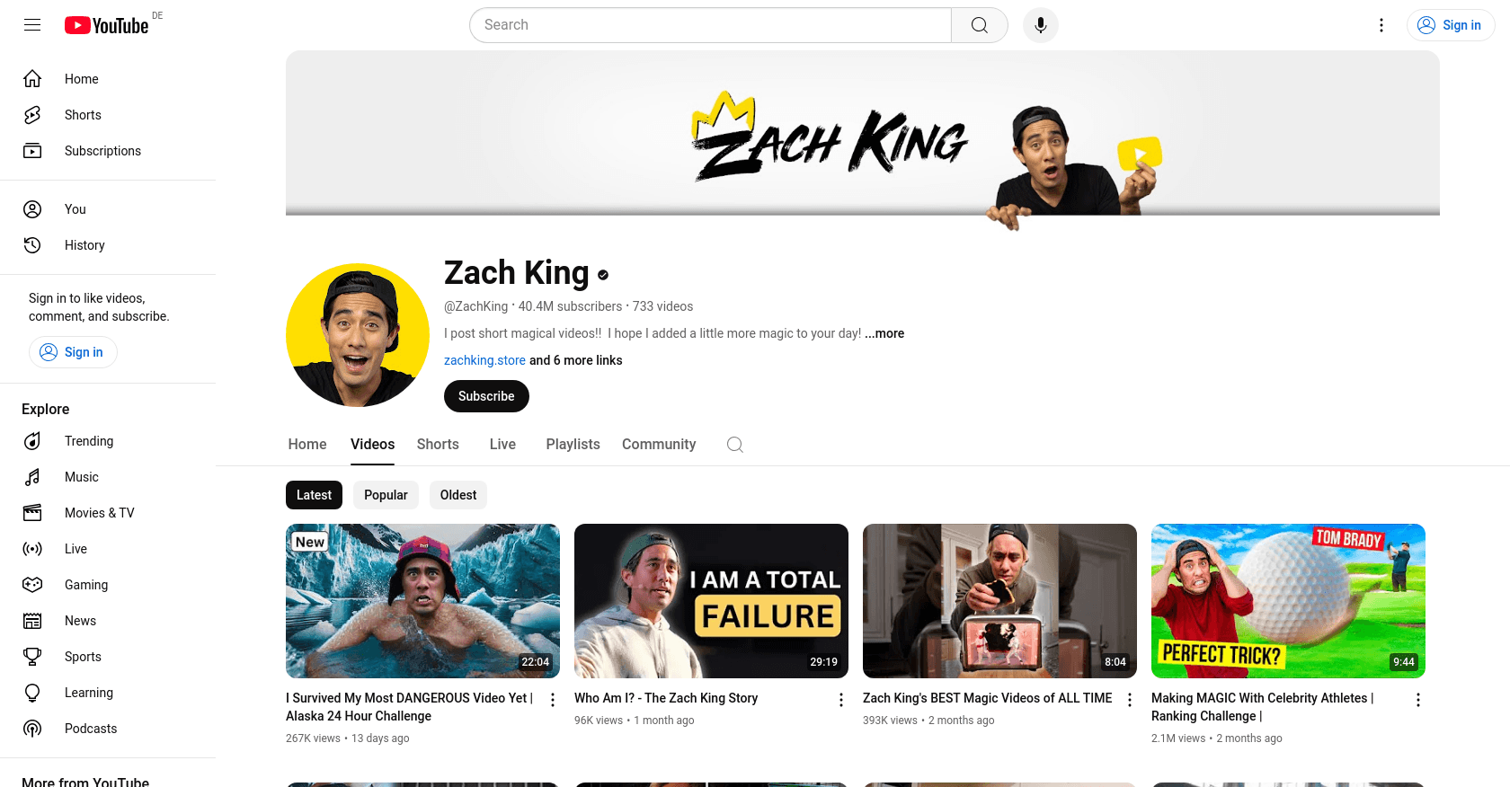 Zach King, a renowned internet personality, captivates his audience with short magical videos on his YouTube channel.