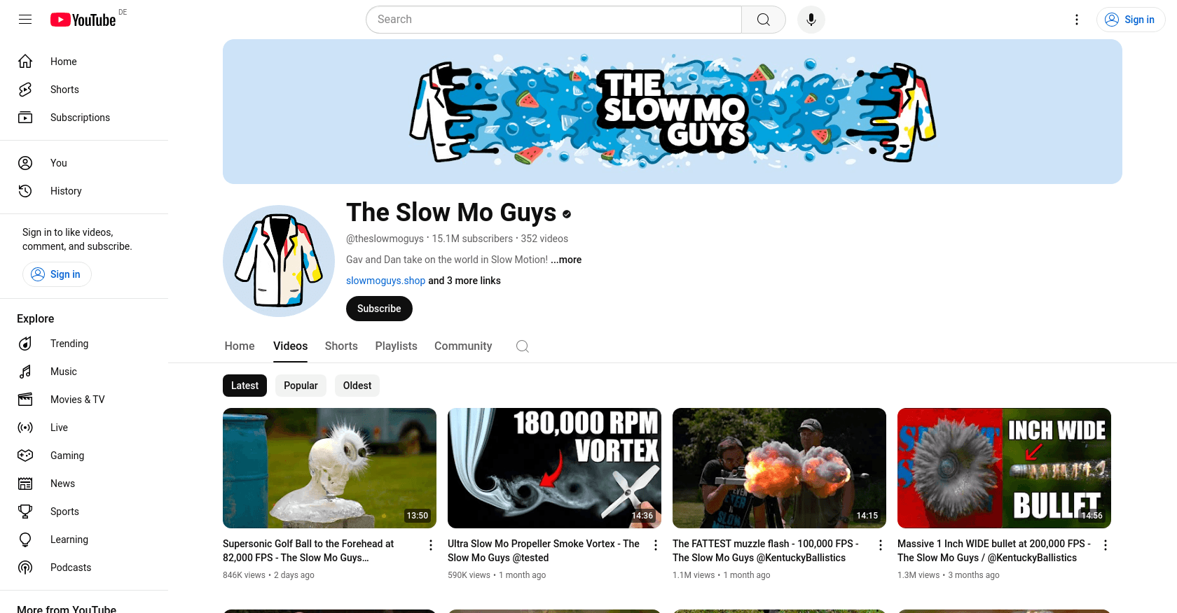 The Slow Mo Guys, created by Gavin Free and Daniel Gruchy, is a YouTube channel renowned for its high-quality slow-motion videos. The channel, which joined YouTube on August 15, 2010, has amassed over 15 million subscribers. For more information, visit The Slow Mo Guys.