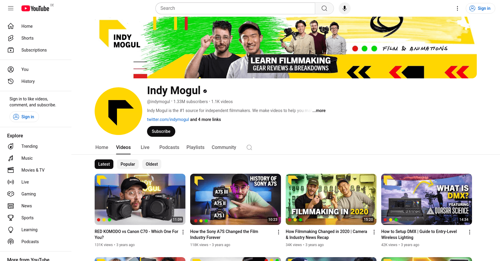 Indy Mogul, hosted by Ted Sim and Dave Maze, is a YouTube channel dedicated to independent filmmakers, offering tutorials, gear reviews, and cinematography breakdowns. The channel, which joined YouTube on April 16, 2007, has become a valuable resource for aspiring filmmakers. For more information, visit Indy Mogul YouTube Channel.