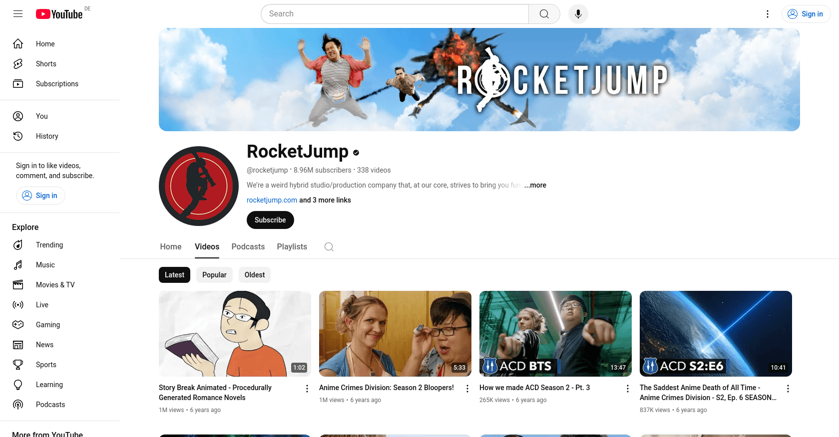 The audience for RocketJump tends to be a mix of teenagers and adults who are passionate about creative and humorous video productions. For instance, a high school student might watch their "The Floor is Lava" video to enjoy its comedic and imaginative storytelling, while a young adult could follow their "Anime Crimes Division" series for its unique blend of anime and live-action comedy.