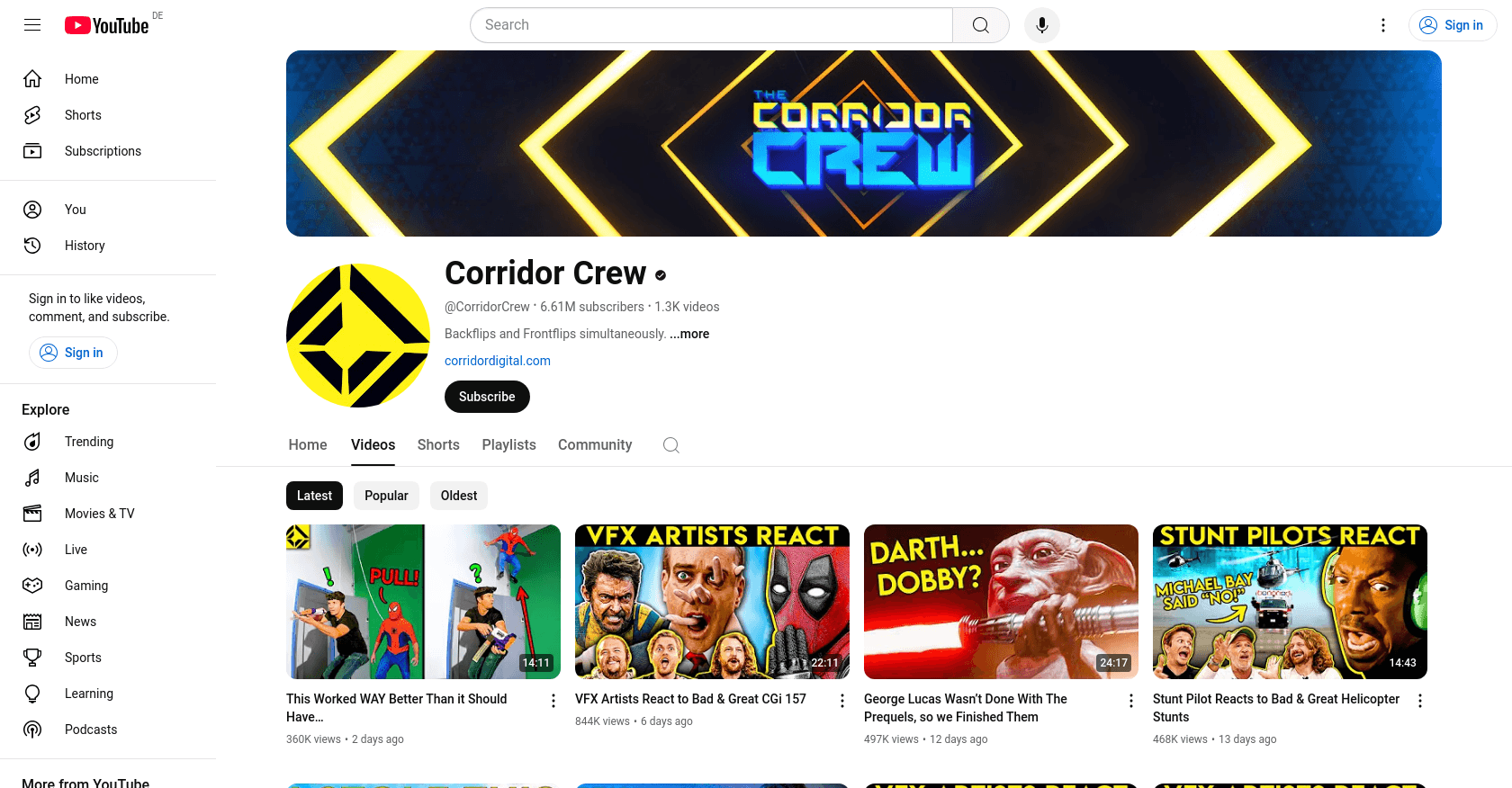 Corridor Crew's YouTube channel offers a wealth of insights and statistics that highlight its impact and reach.